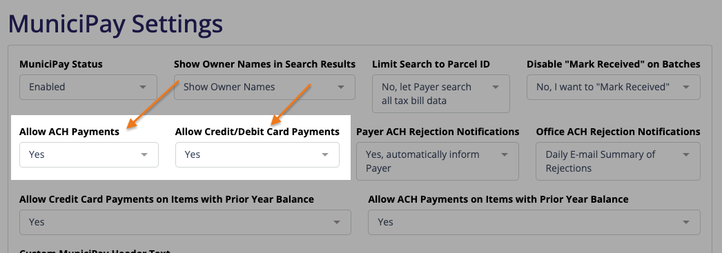 In the MuniciPAY Settings page, you will see two settings you can adjust.