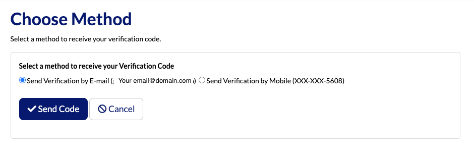 3. Choose where the verification code is to be sent (email or mobile) and click 'Send Code".