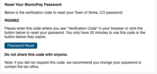 4. Email or text is sent with Verification Code with expiration of 20 minutes. **Note: If you don't receive your code, you may not have an existing account established and need to create an account.