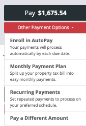 After you have found the item you wish to pay, click “Payment Options”. In the dropdown, select “Setup Recurring Payments”.